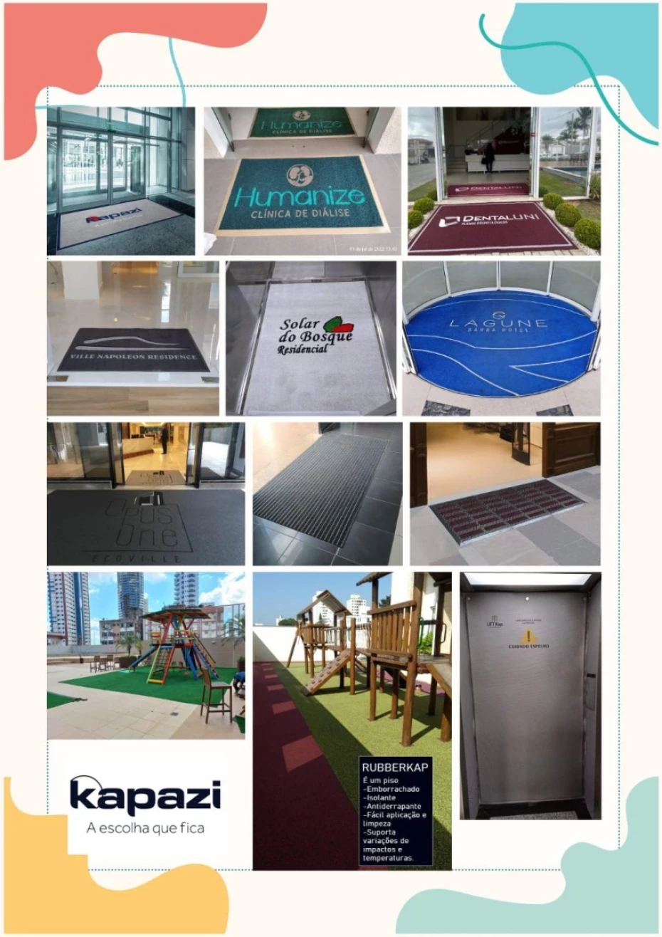 Pisos e tapetes personalizadosPisos e tapetes personalizados em Curitiba. Oferecemos soluções em Tapetes Personalizados e pisos especiais, como Piso Vinílico e Piso para Playground entre outros. Conheça nossa variedade de opções para transformar seus espaços. Conheça toda linha de produtos em www.kaplus.com.br